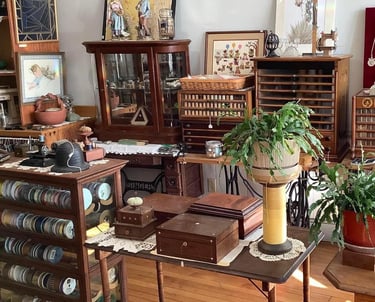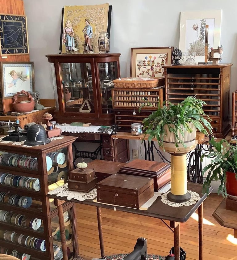 Quilting Studio and gallery established 2001 showcasing quilts, sewing antiquities and collectables. Features the work of Joey Mahieu.