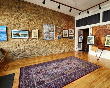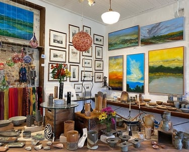 A gallery of fine art and handicrafts with regularly changing exhibits.
