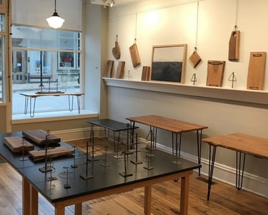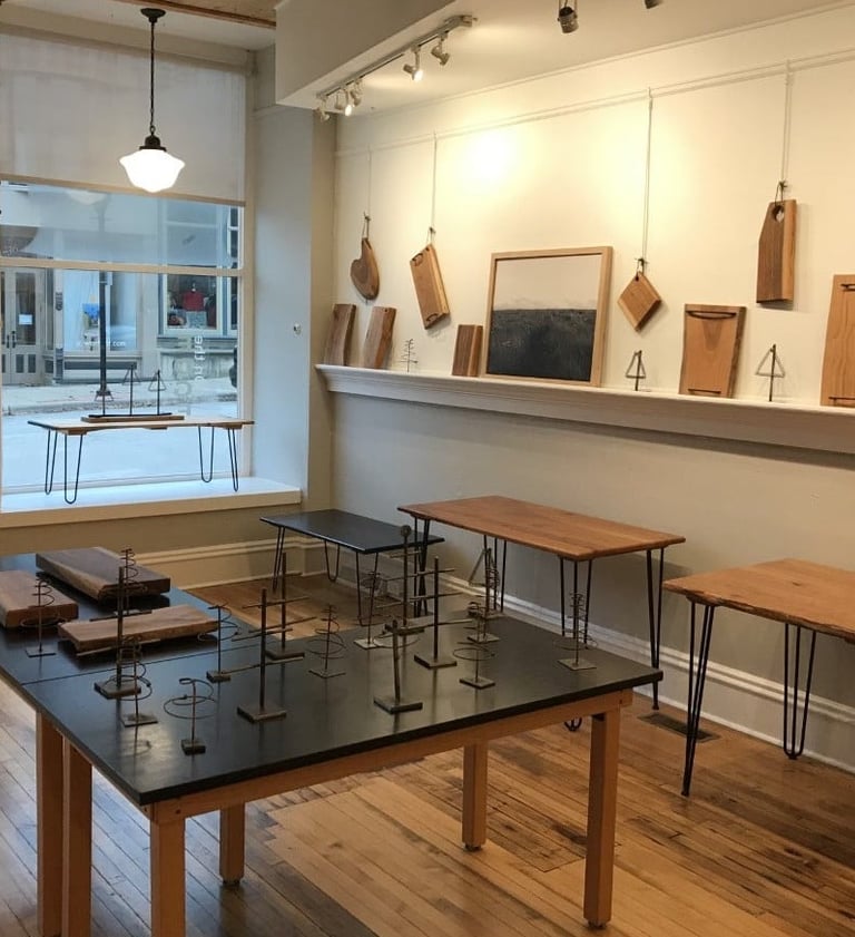 Hand crafted tables, serving/cutting boards, floating shelves, and home decor items from sustainably managed Wisconsin woodlands.
