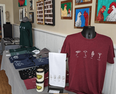 Hand woven on premises, garments and accessories designed and produced by Kathleen Nutter since 1985 are available in this historic venue. Also offering felted purses and cashmere scarves, jewelry, hand-knit characters and prints.